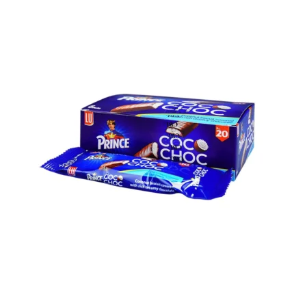 Lu Prince Choco Choc Coconut Covered Biscuit 26g is a deliciously decadent treat featuring a crunchy biscuit base, rich chocolate coating, and toasted coconut flakes. This snack is perfect for those who love chocolate and coconut. With its delicious flavor and satisfying texture, it's a great treat for any occasion.