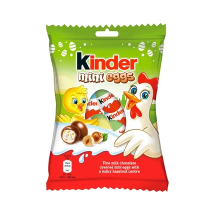 Kinder Mini Eggs Pouch 75g is a delightful and convenient treat, featuring bite-sized chocolate eggs with creamy milk chocolate and a fun, egg-shaped design, perfect for snacking on the go.