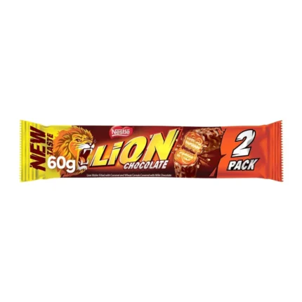 Nestle Lion Chocolate 60g is a crunchy and delicious treat, featuring wafer and caramel layers covered in smooth milk chocolate, perfect for satisfying sweet and crunchy cravings.
