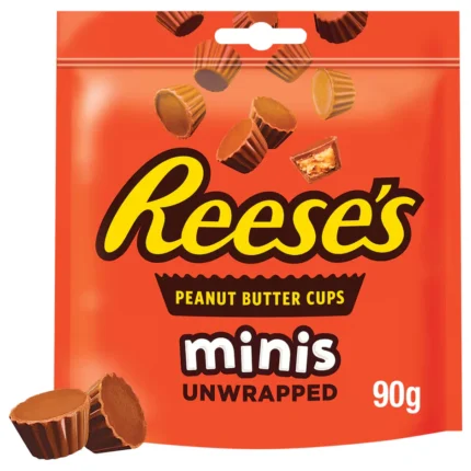 Reese's Peanut Butter Cups Minis 90g is a delicious and bite-sized treat featuring smooth peanut butter filling covered in creamy milk chocolate, perfect for those who love the classic combination of peanut butter and chocolate.