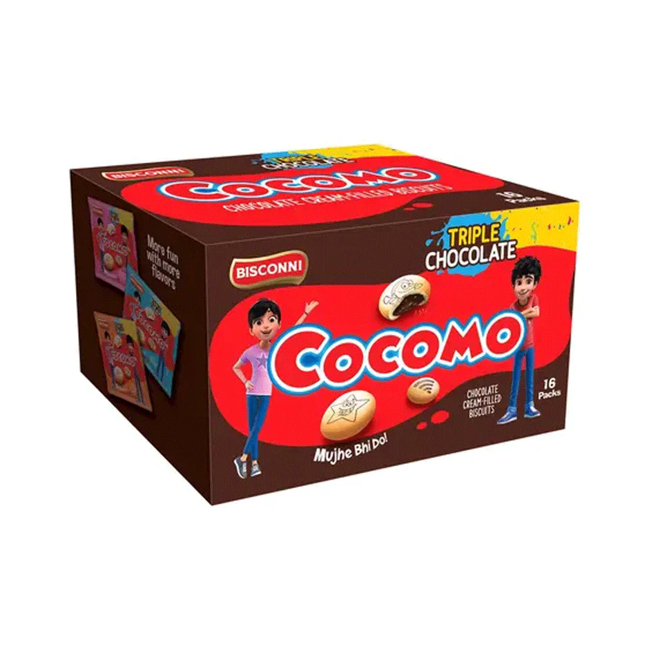 Bisconni Cocomo Triple Chocolate Cream-filled Biscuits 24s are made with high-quality ingredients and offer a delightful combination of crunchy biscuit and rich chocolate flavor. The triple chocolate cream filling adds a soft and velvety texture, making each bite a pleasure. These biscuits are perfect for snacking on the go or pairing with a cup of coffee or tea