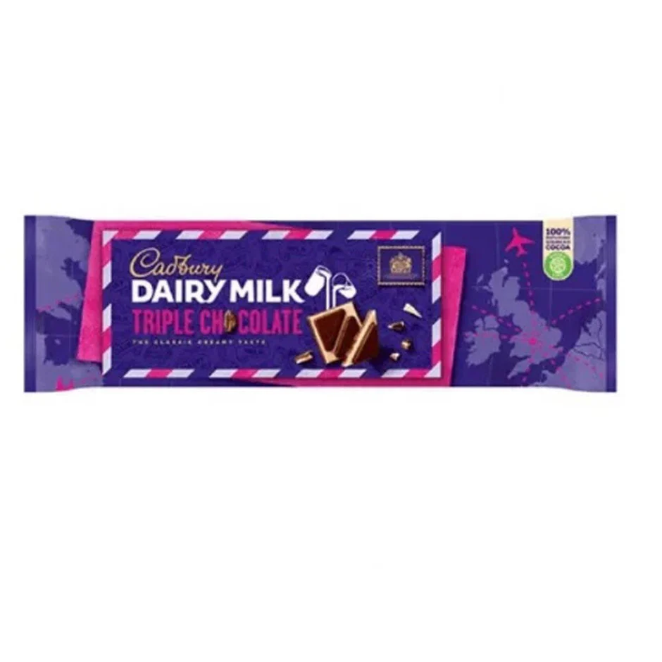 Cadbury Dairy Milk Triple Chocolate 300g is a rich and indulgent treat, featuring a trio of creamy milk, smooth white, and decadent dark chocolates, perfect for satisfying chocolate cravings.