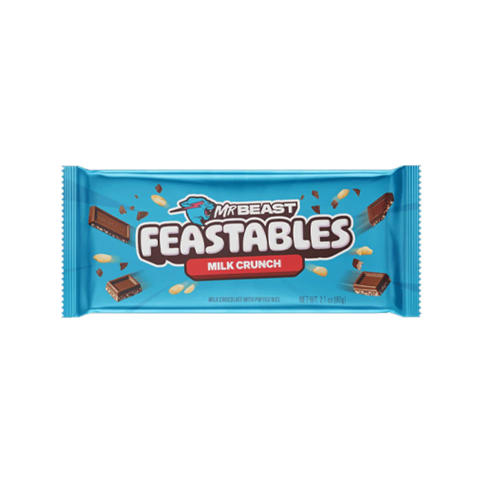 Feastables MrBeast Bar Crunch Chocolates is a tasty treat. This 60g bar features crunchy elements coated in smooth chocolate, offering a satisfying texture and flavor experience.