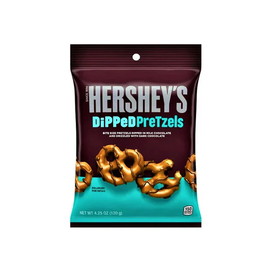 Hershey’s Dipper Pretzels Chocolate 120g is a delicious snack featuring crunchy pretzels smothered in smooth and creamy Hershey’s milk chocolate, perfect for satisfying sweet and salty cravings.
