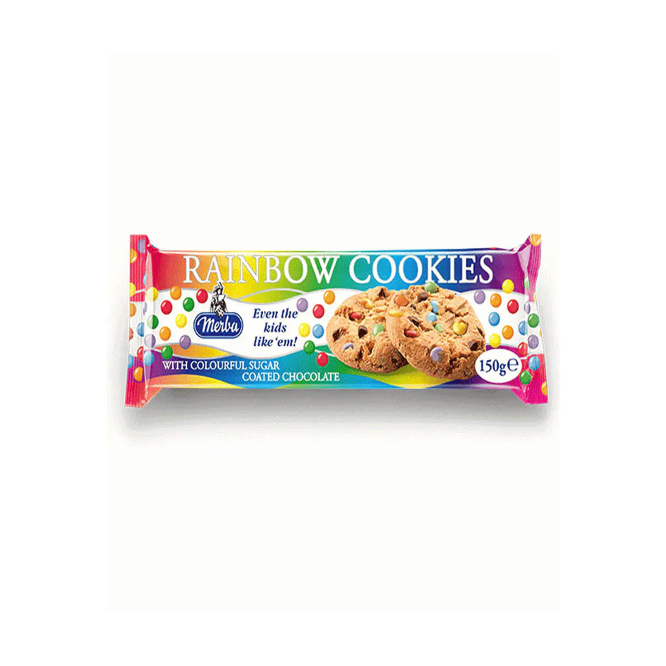 Merba Rainbow Cookies 150g is a deliciously colorful and sweet treat featuring rainbow-colored cookies that are perfect for snacking. These cookies are crafted with care and attention to detail, ensuring a delightful snacking experience.