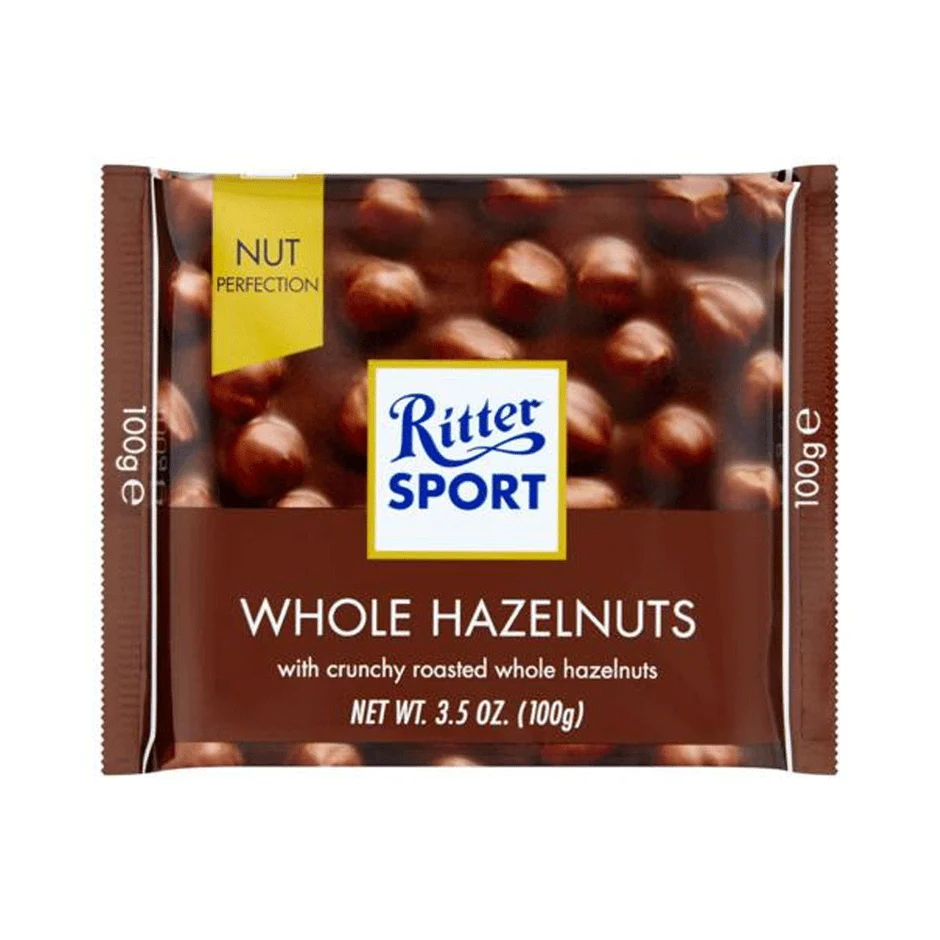 Ritter Sport Whole Hazelnuts Chocolate 100g is a delicious and satisfying chocolate bar, featuring whole hazelnuts covered in rich and creamy milk chocolate, perfect for those who love nutty and indulgent chocolate experiences.