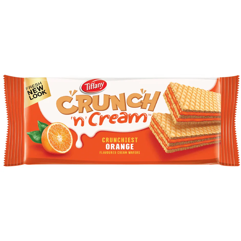 Tiffany Wafer Crunch N Cream Orange 150g is a deliciously sweet and creamy treat featuring crunchy wafer biscuits with an orange-flavored cream filling. These wafers are perfect for those who love a sweet and indulgent snacking experience.