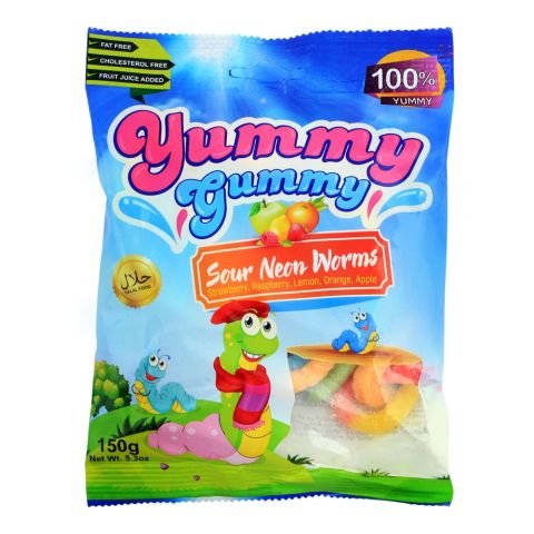 Yummy Gummy Jelly Sour Neon Worms, Gluten Free, 150g