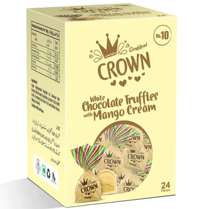 Candy Land Crown White Chocolate Truffle with Mango Cream 24pcs is a luxurious and creamy treat featuring rich white chocolate truffles filled with a sweet and tangy mango cream, perfect for those who love a tropical and indulgent experience.