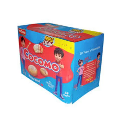 Bisconni Cocomo Triple Chocolate Cream-filled Biscuits 24s are made with high-quality ingredients and offer a delightful combination of crunchy biscuit and rich chocolate flavor. The triple chocolate cream filling adds a soft and velvety texture, making each bite a pleasure. These biscuits are perfect for snacking on the go or pairing with a cup of coffee or tea