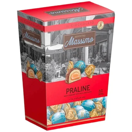 Maestro Massimo Praline Chocolate 300g is a rich and decadent treat featuring smooth chocolate filled with crunchy and nutty praline pieces, perfect for those who love a delicious combination of textures and flavors.