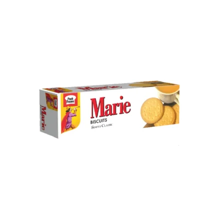 Peek Freans Marie Fp Biscuit is a classic biscuit that features a timeless blend of vanilla, butter, and milk, creating a majestic flavor for every tea-time pleasure.Detailed Description: These biscuits are made with natural ingredients and come in different flavors, so you can find the perfect one for your taste. With under 300 calories and 8g of sugar, they're a great snack to keep you satisfied throughout the day. The soft, pillowy-like texture melts in your mouth, providing a delightful experience.